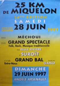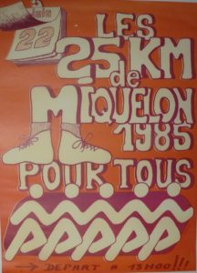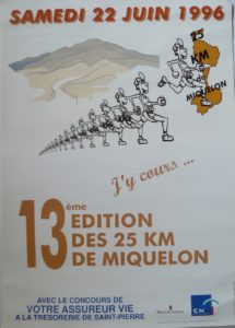 Toutes les affiches des 25km de Miquelon depuis 1984. La seule manquante est celle de l’année 1988. Si vous en possédez une copie, nous vous serions reconnaissants de nous en faire parvenir une photo ou un scan, afin de compléter notre collection.