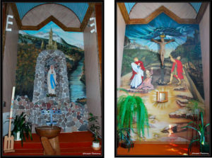 Depuis, des travaux d’entretien ont régulièrement été effectués et la toiture du cloché a été entièrement refaite. Victoria-Blanche et Clément-Amélie, les deux cloches qui dominaient le village depuis le 1er février 1931, ont vu arriver en 1988 une compagne baptisée Marie-Jeanne offerte par le Révérent Père Frédéric Heudes. En 1989, la grotte de Notre-Dame de Lourdes à gauche du chœur, a été magnifiquement décorée d’une peinture d’artiste exécutée par Mme Yvette Detcheverry.