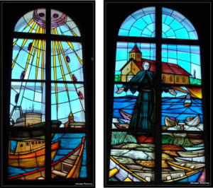 La charpente de la toiture, assez impressionnante, fut envoyée préfabriquée de Métropole. Toutes les poutres sont assemblées par des chevilles en bois. La construction fut achevée en 1865 et l’édifice fut inauguré, le 1er novembre de cette même année. Pour la petite histoire, lorsque les Acadiens arrivèrent à Miquelon en 1763, ils étaient très pauvres et n’avaient donc pas les moyens de financer la construction d’une église. C’est le père Ardilliers (curé venu avec Dangeac), l’un des neufs héritiers d’une famille aisée qui, avec sa sœur religieuse au couvent Notre-Dame des Ardilliers près de Saumur sur la Loire, avança vraisemblablement une partie de l’argent nécessaire à la construction. C’est donc en hommage à ce prêtre qu’un siècle plus tard, on plaça à nouveau cette église sous le vocable NOTRE-DAME DES ARDILLIERS. En cette même année 1865, l’Empereur Napoléon III fit don d’une magnifique peinture, une reproduction de « l’Assomption » de Murillo (peintre espagnol du 17ème siècle) qui orne le fond du chœur.